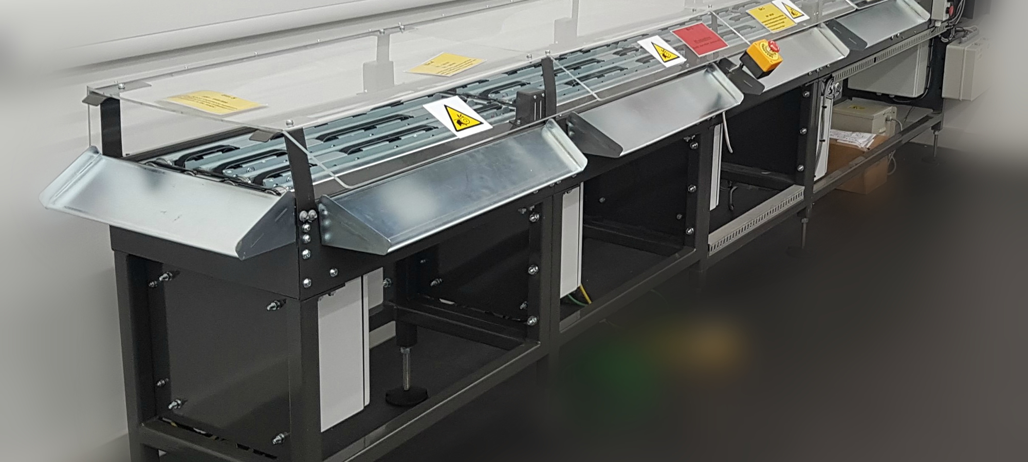 Originally designed for high speed sorting of returned library books to facilitate re-shelving them. The equipment can be used for sorting any type of small package. It can easily be configured to have 3,4,7,9 or 11 or more outlets.